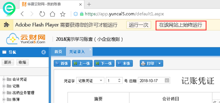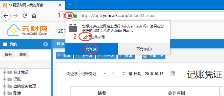 “凭证录入”无法正常操作(提示需要设置Flash插件)