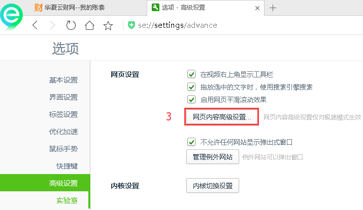 ②接下来选择【高级设置--网页设置--网页内容高级设置】
