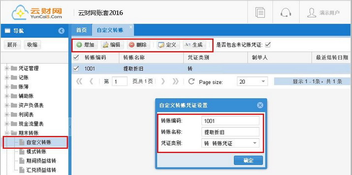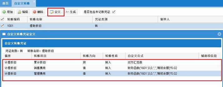 自定义转账,指一般在月末进行,用于固定会计科目之间的结转,可自行定义结转关系,转账数据来源于总账中的凭证。