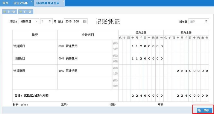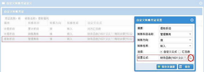 本例以“每月分别按固定资产期初余额的2%,提取销售部门和管理部门的折旧额”,演示如何设置自定义转账凭证。