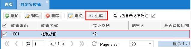 【期末转账--自定义转账】 → 选择要生成的凭证名称 → 点击【生成】按钮 → 即可生成按定义组成的转账凭证。