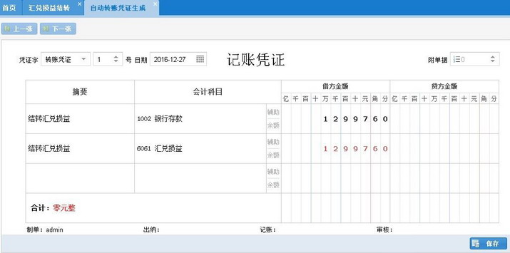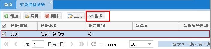 【期末转账--汇兑损益结转】 → 选择要生成的凭证名称 → 点击【生成】按钮 → 即可生成相应的汇兑损益调整凭证。
