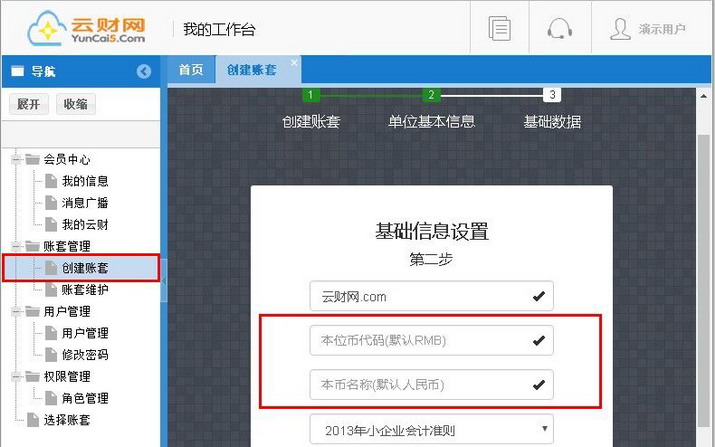 云财网在线会计中本位币设置,在新建账套的时候确定。注意:本位币设定后,不能修改。